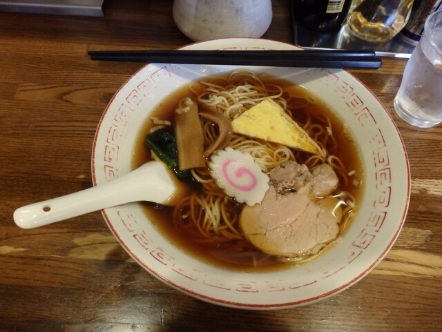 地方の小さな街の古い食堂で、ラーメンをいただくと