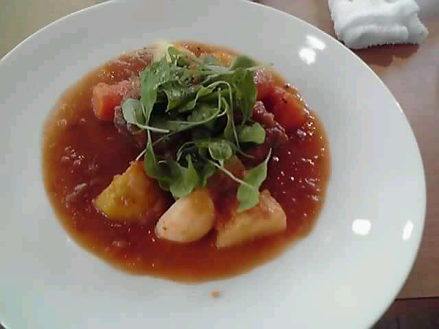肉はナイフを入れるとほろりとほぐれます。口に入れると、トマトソースと肉汁が渾然一体となり心地よい味わいです。ジャガイモなどの根菜類も、ソースの旨みを吸って美味しくなっています。ソースの味に関していうと、流石に高級店のような味の深みはないのですが、料理自体は丁寧に仕上げられているため、全体的には好印象です。