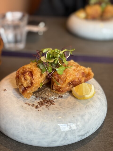 白子は国産じゃ無いけど 無理を言ってご準備頂いたもの。 国産のようにねっとりせずあっさりしているけど これはこれでフリットのサクサク衣と木の子のソースと相まってめっちゃ美味しかった。