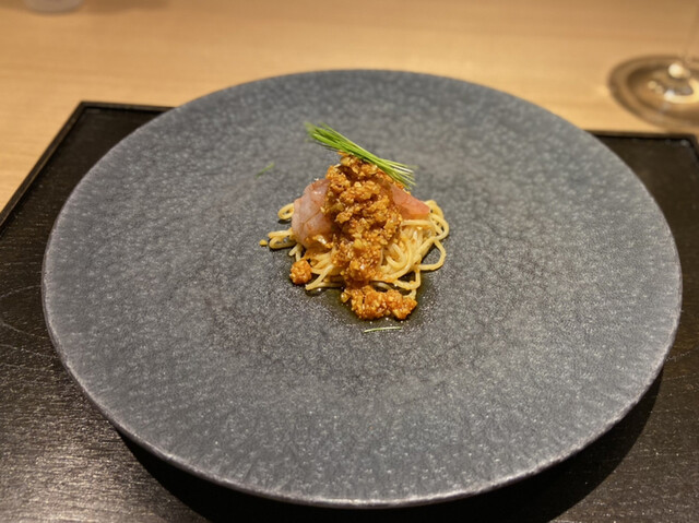 ▫️下関 白甘鯛のお刺身、北海道厚岸の雲丹