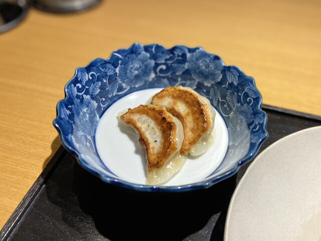 紹興酒漬けを楽しんだあと、蟹ほぐし身と味噌の餃子を
