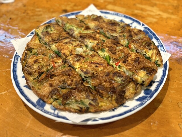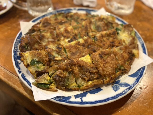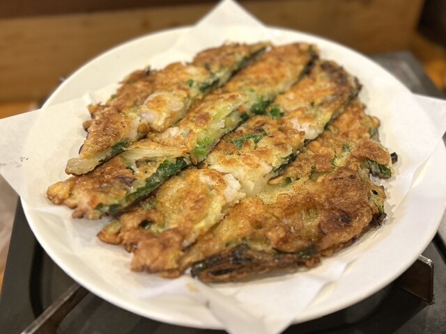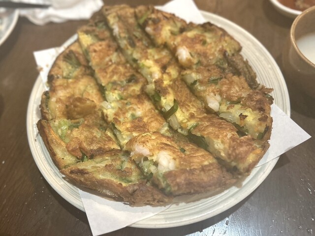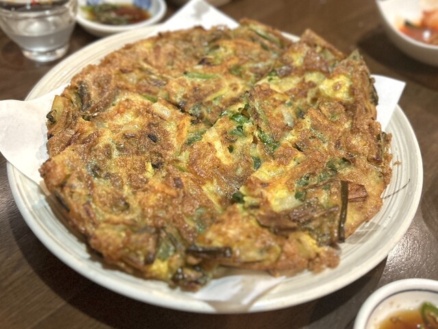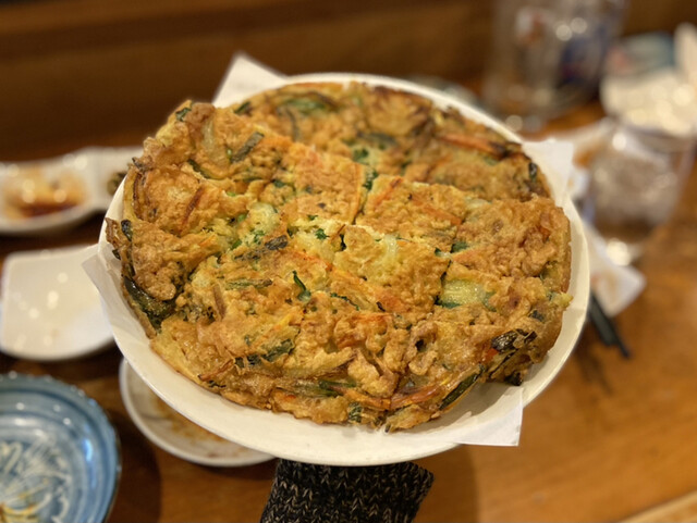 スタンダードなチヂミが食べたく、皆で1枚をシェア。