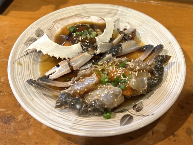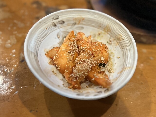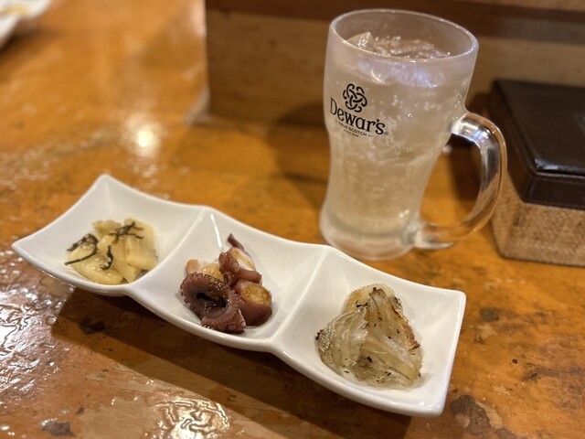 帆立、ピリ辛コブクロ、海苔の和え物の3種。