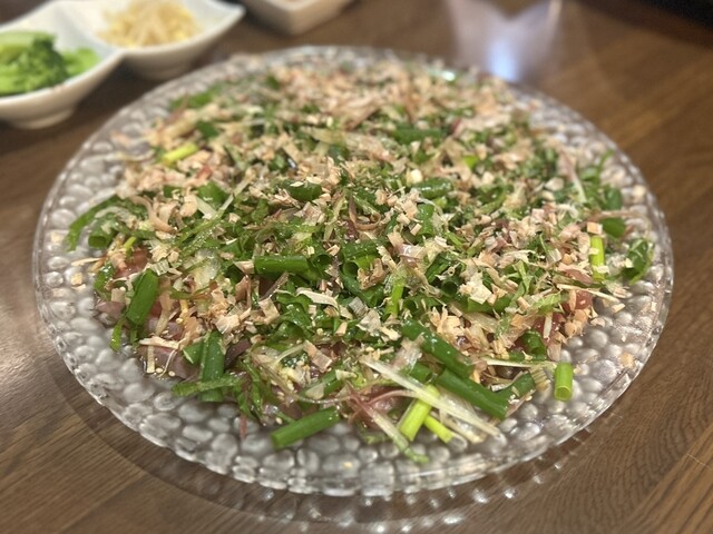 鮪刺身とろけたなぁ、玉ねぎドレッシングで
