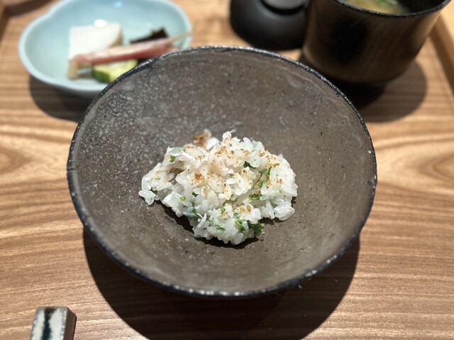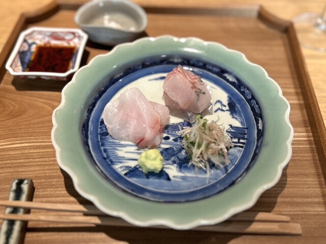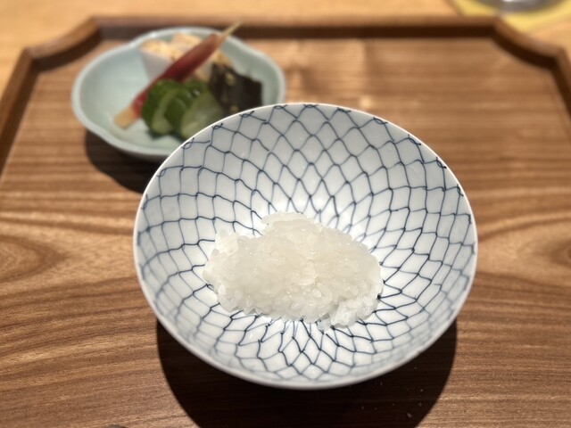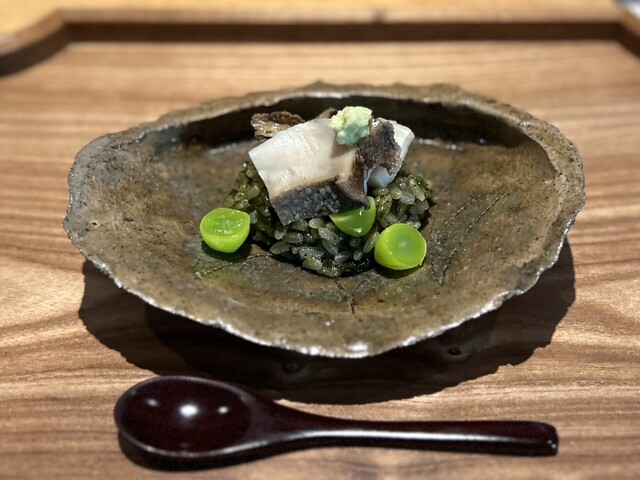 ▫️泳がせ、神経〆魳の飯蒸し 銀餡と山葵