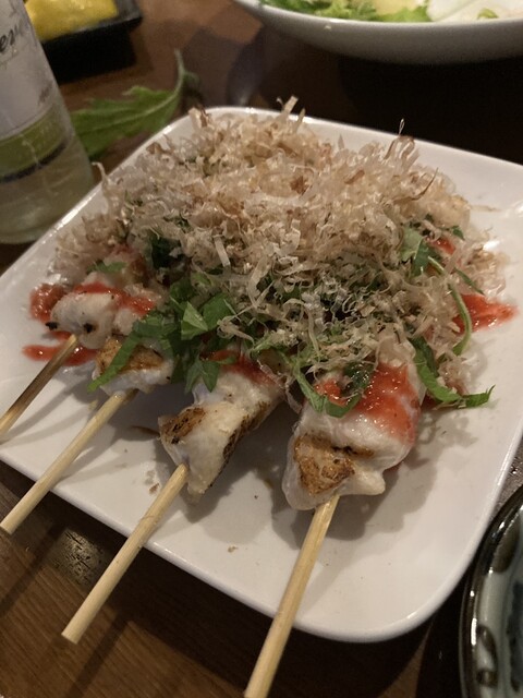 他に焼き鳥とでっかいシーザーサラダをチョイス。脂肪肝の入口と脅かされてノンアルビールで今日は我慢。でも焼き鳥について来た辛味噌が美味しくて、テイクアウトして来ました。可愛い女の子のスタッフさん達がテキパキと動いていました。サラリーマンで殆ど満席。駅前だし、オーダーしたメニュー全部美味しかったです。