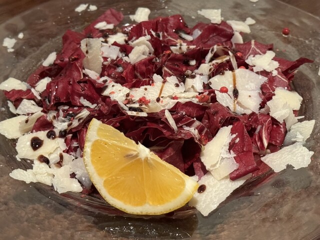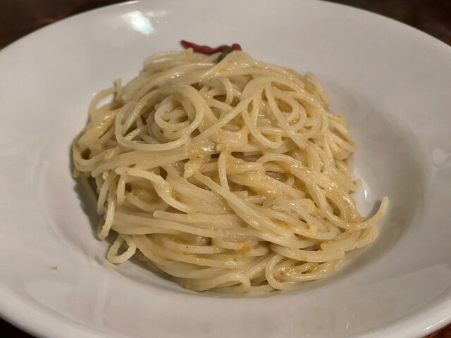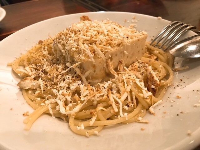 ソースが絶妙。正体は不明だがバルサミコににんにくもあわさってる?上品な馬刺しをいただく感覚。ここは1皿の量が多い料理がほとんどですが、これは唯一普通量に感じました笑