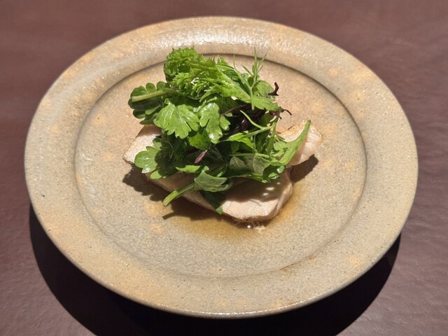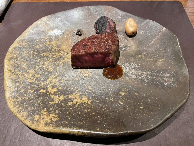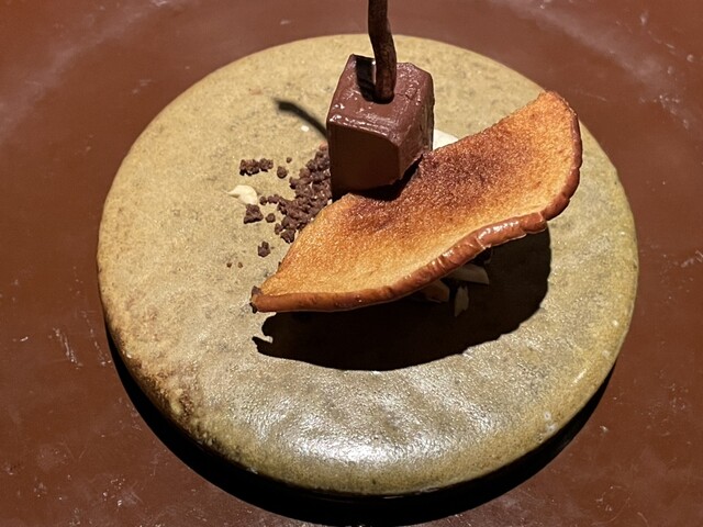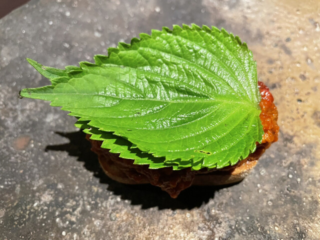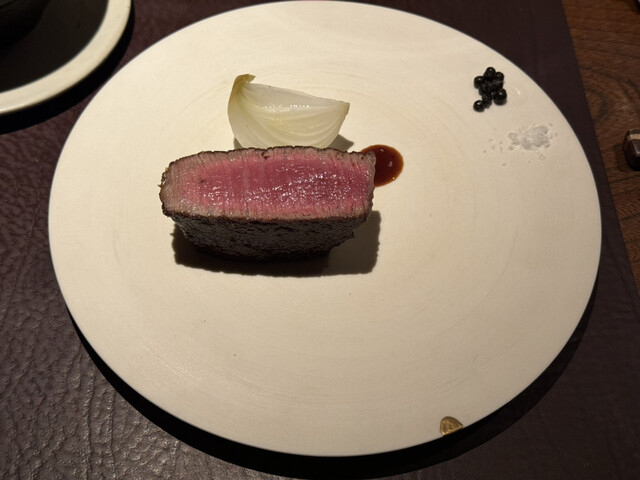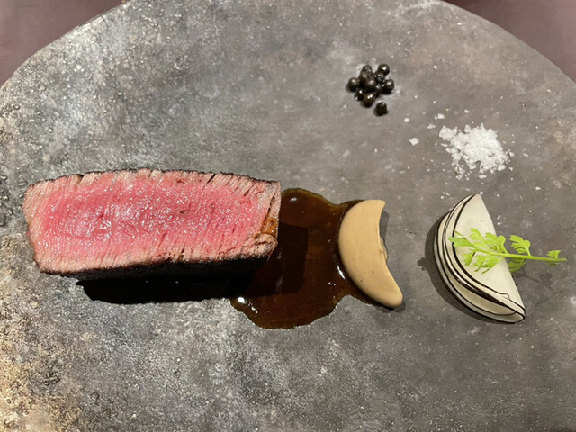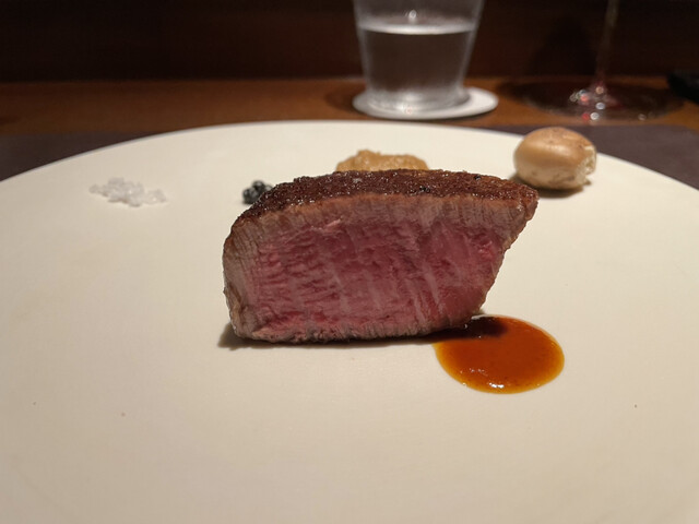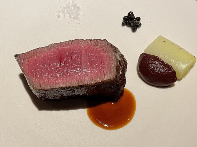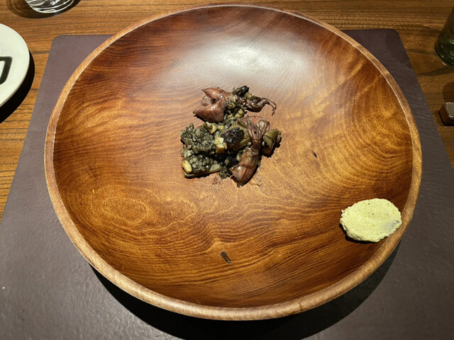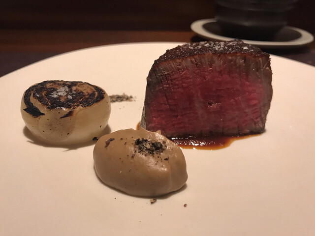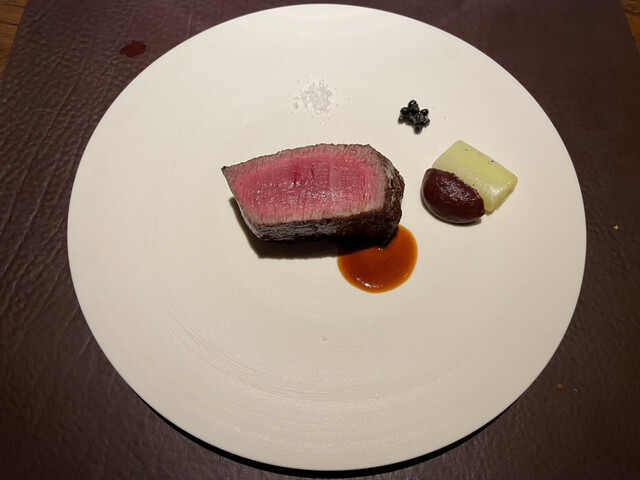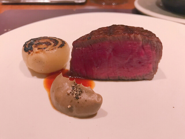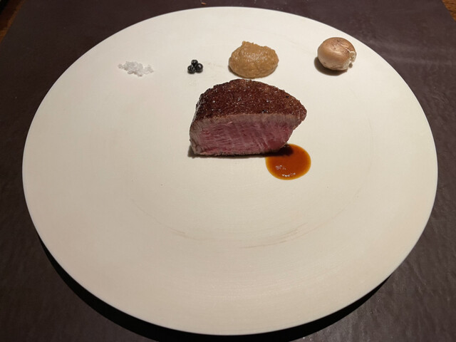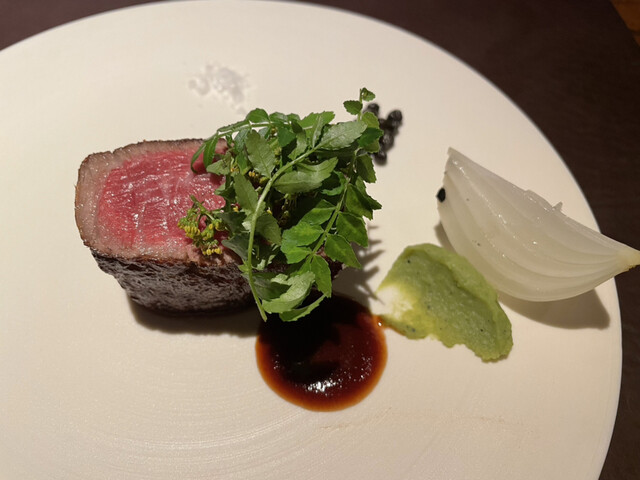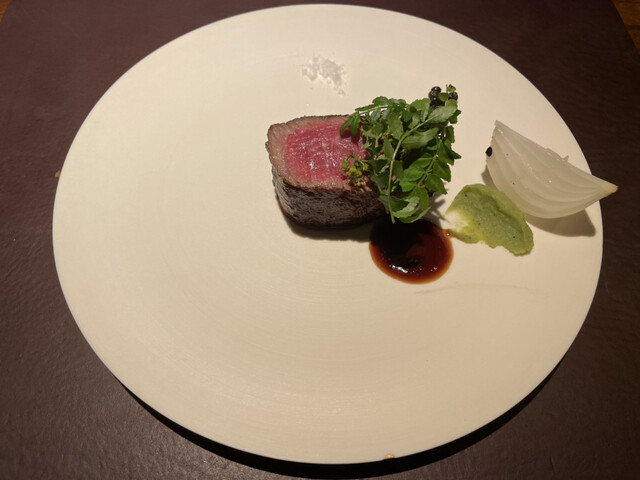 そえてあるのは、京都のしいたけピューレと北海道産ペコロス。