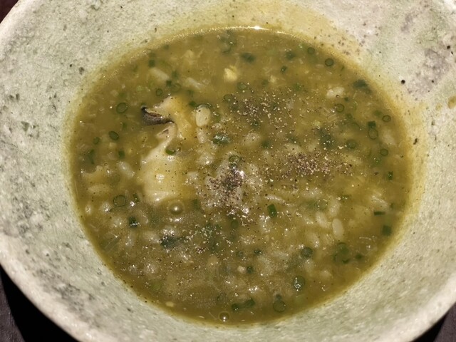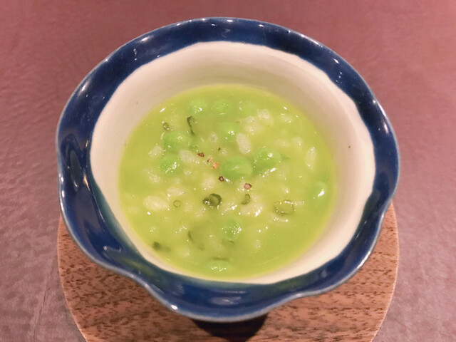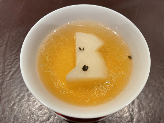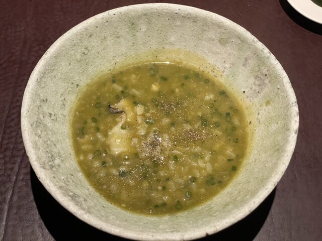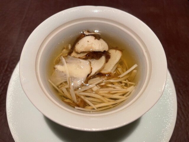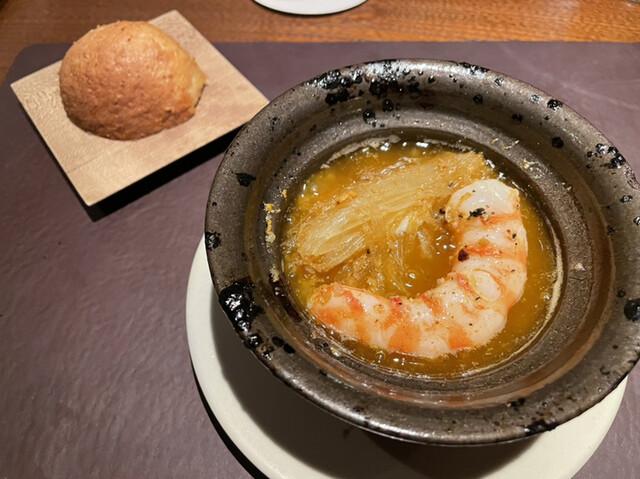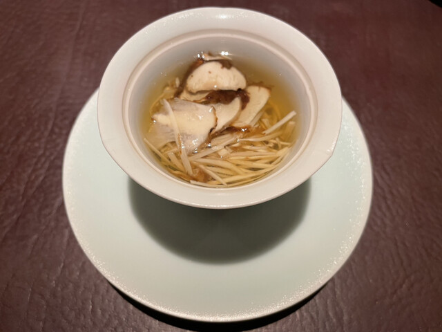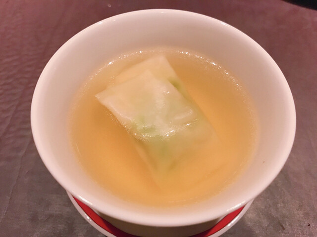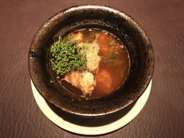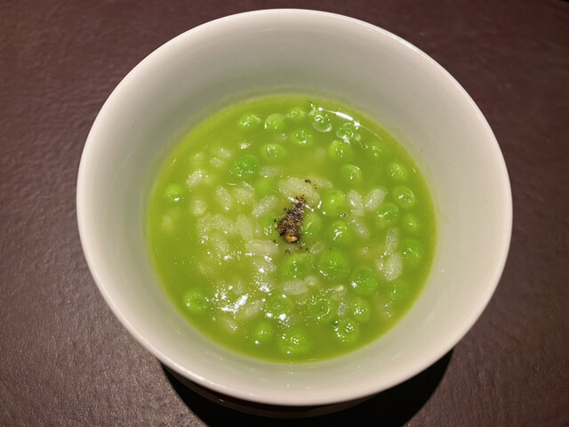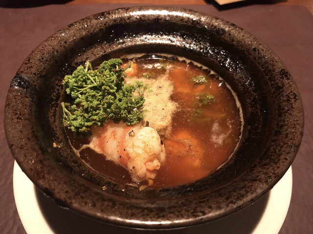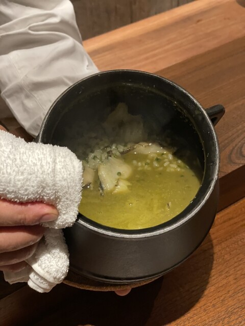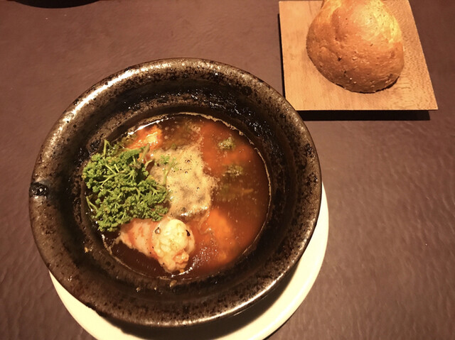 不思議と生ハムの味わいがするけど、さっきのアヒージョの脂をすっきりさせてくれるような優しいスープ。