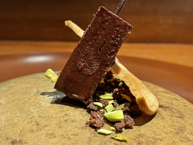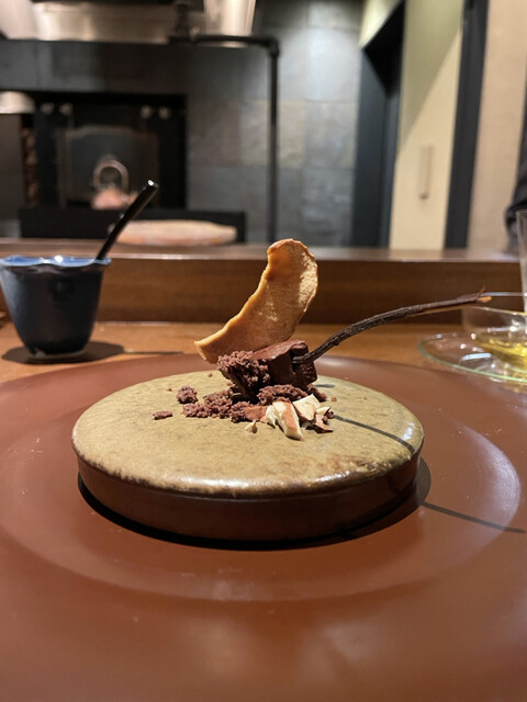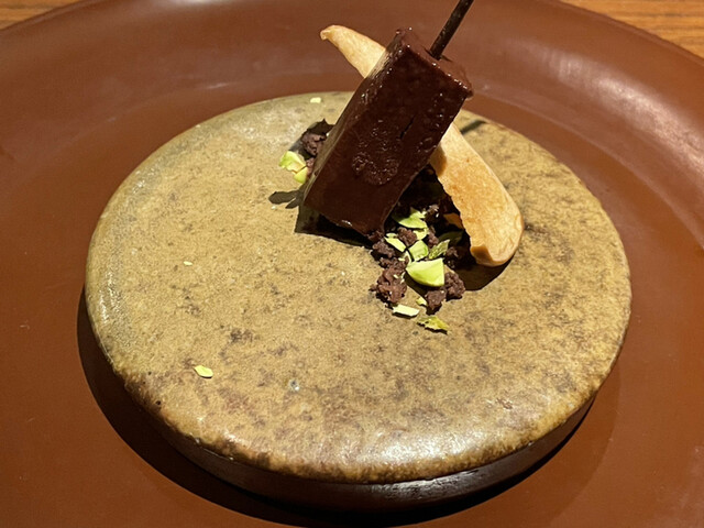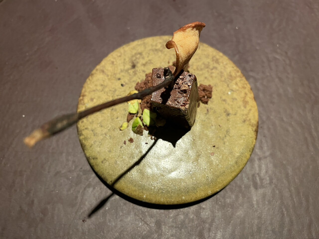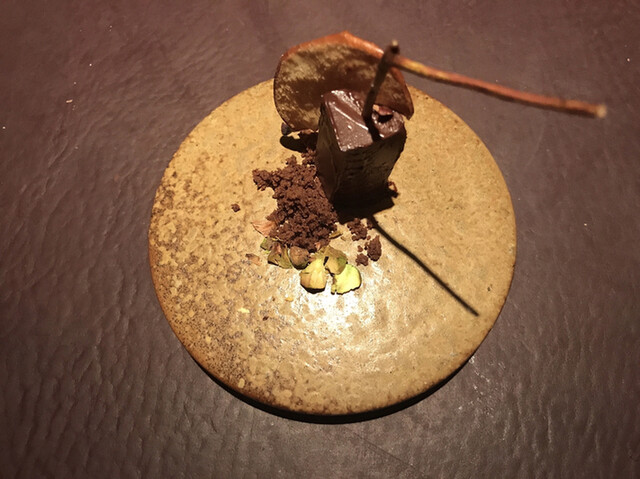 大好きなオリーブオイルと山羊のミルクアイスをいただいて定番のペルー産アマゾンカカオとスペイン産チョコレートにて〆。