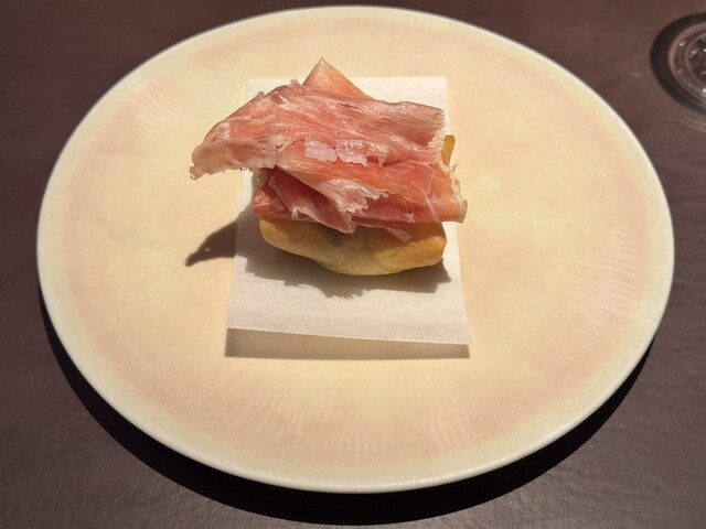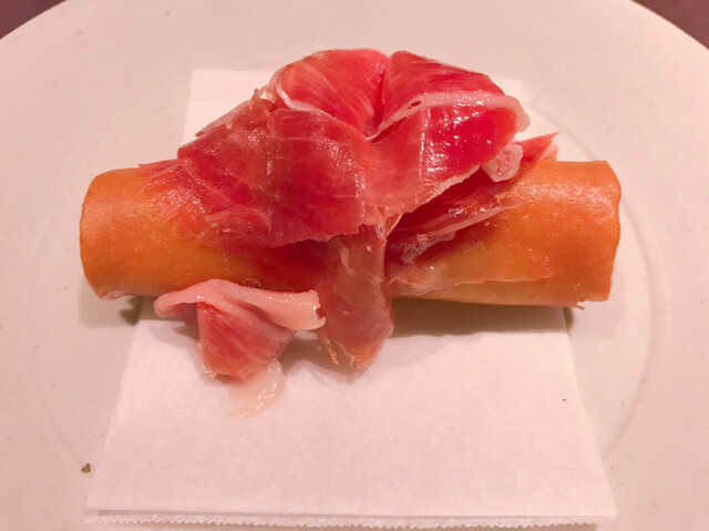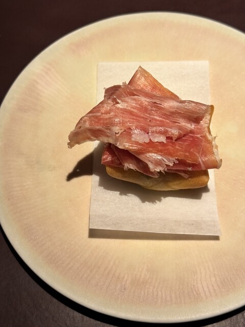 更には上にも削りたてのハモンセラーノがのり、まずはつまみながら大好きなワインをペアリングでいただく。