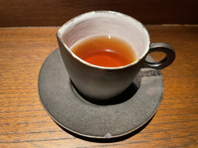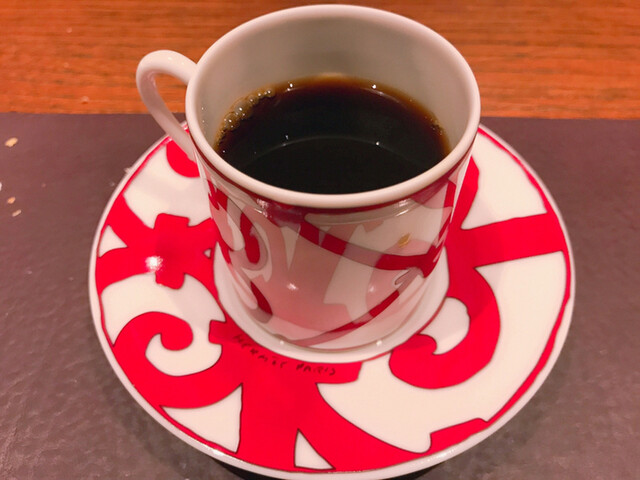 食後の飲み物、コーヒーとかも東シェフがペーパードリップしてくれます。
