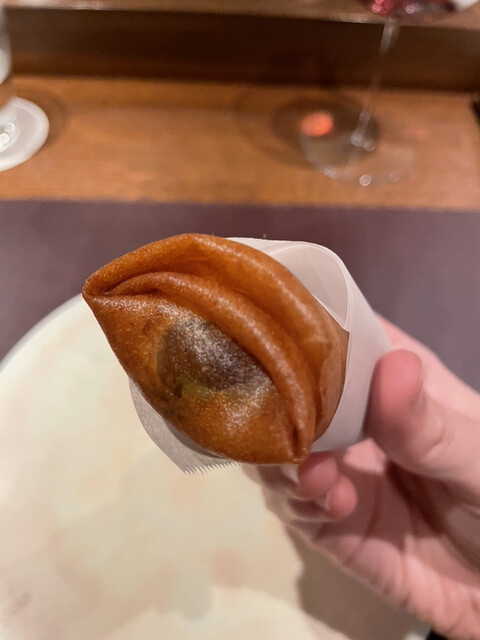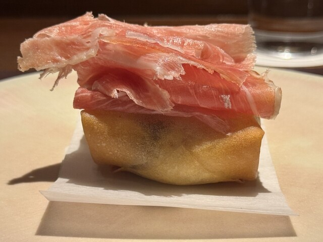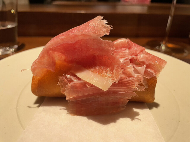生ハムの入った春巻きの皮でパリパリなクロケッタ。