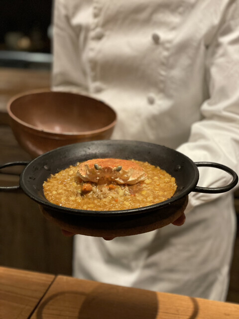パエリアの方にはシェリーワインビネガーがしっかりきいていてお鮨に近いような感覚です。
