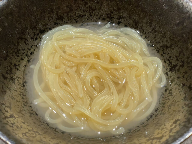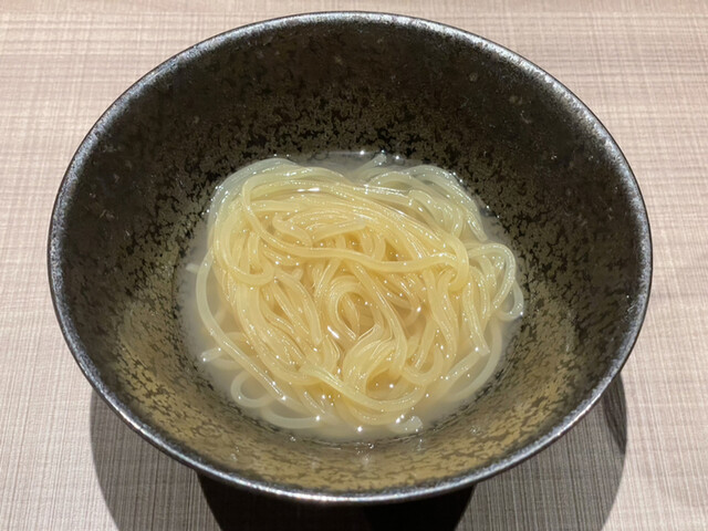 冷麺のスープらしく多少は透き通っているのに魚介が濃厚すぎてびっくり!クラムチャウダーみたいな濃厚な味わい。さっぱりとした後に蛤の余韻が抜ける絶品冷麺でした。