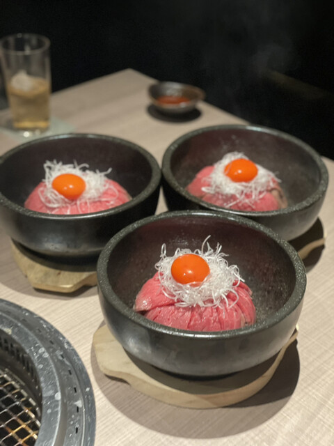 和牛ハラミ刺しと短冊タレユッケの盛り合わせは