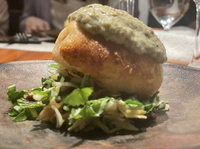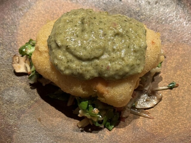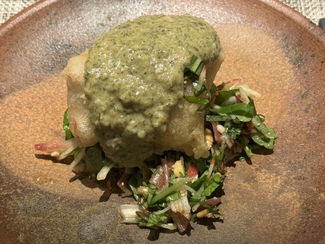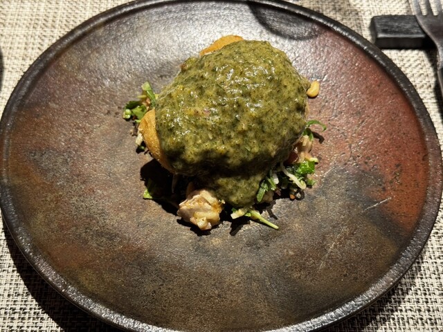 下と上ではそれぞれ違った酸味があって、上は、マスタード系、下にはナッツやミントやら色々な味わいがあって全体のバランスが絶妙。