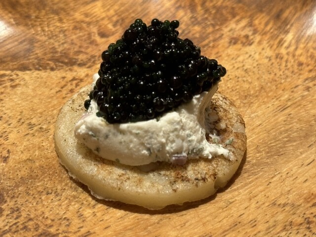 キャビアのカナッペからスタートします。