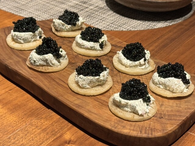 たっぷり乗ったキャビアとクリームチーズがモチモチのパンの上に。
