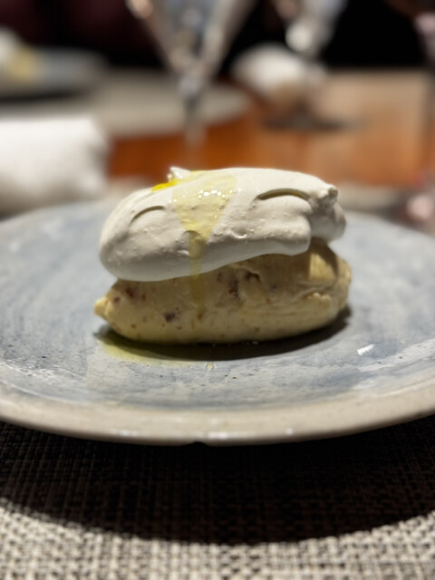 ここでワインはFrancois CarillonのPuligny-Montrachet 2020 Millesimeをいただいていたわけですが、この日はベニエの逆というか。