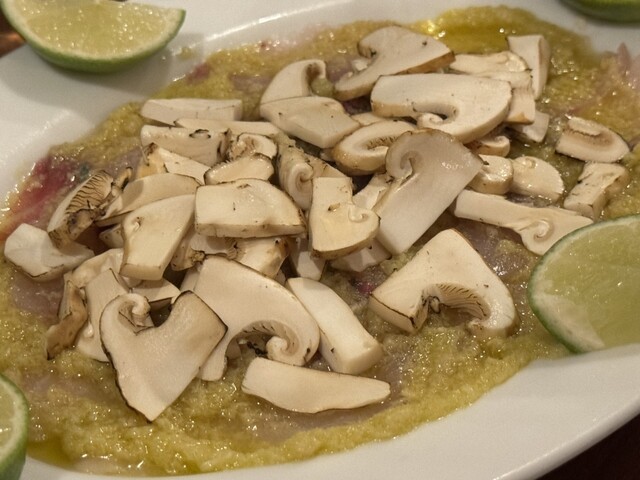 松茸の縞鯵のカルパッチョ レフォールソースは