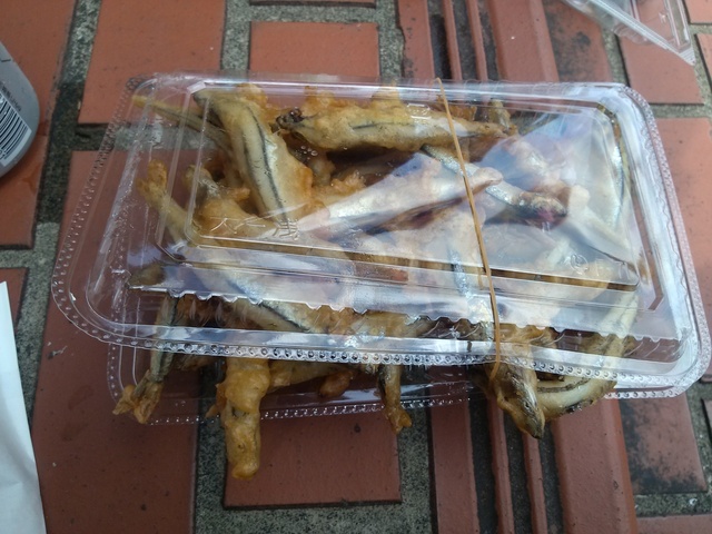 山盛りのきびなごを味の付いた衣につけて揚げてあり