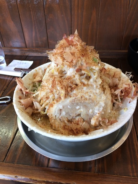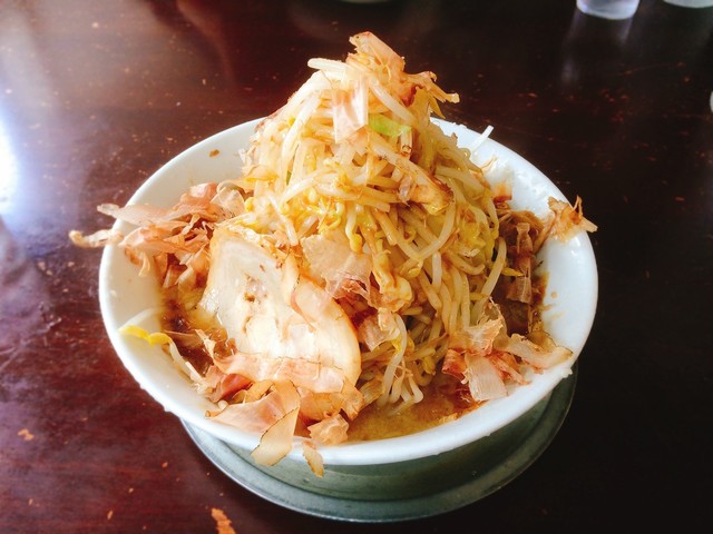 ラーメン/無料トッピング(油…ギト、野菜カチ…山盛り、魚…鰹節、中盛(650円)