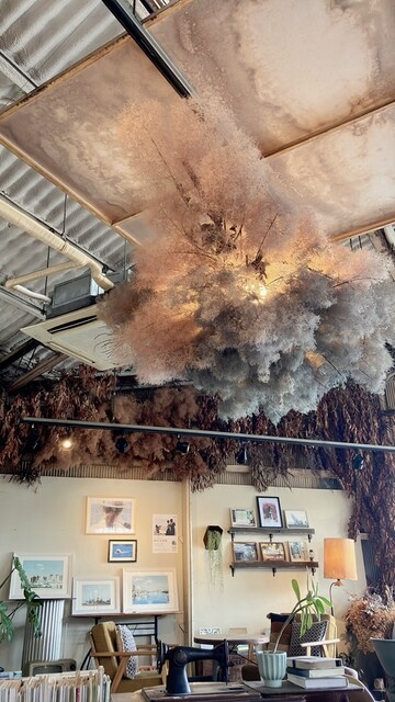 店内は古い家具や電化製品、ドライフラワーに剥き出しの内装など