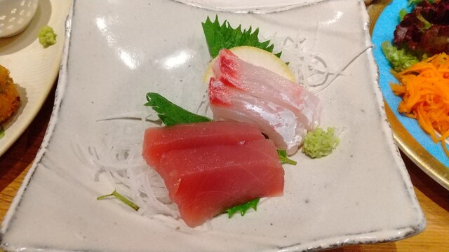 ホタテのサラダ、鮭のマリネ、豆腐の担々鍋、お造り、わさびのコロッケ、金目の煮付、とうもろこしのアイス。
