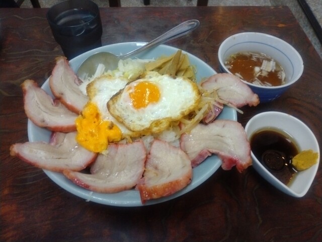 スペシャル酔来丼は、目玉焼き2個に焼豚たくさんで舌っ♬