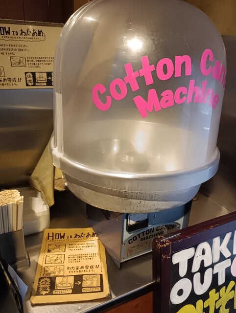 店内入ってすぐ右に〝わたがし機〟があります。「ザラメ糖」の用意無く、使える状態にありませんでした。