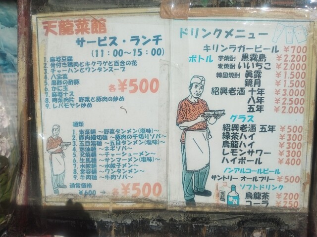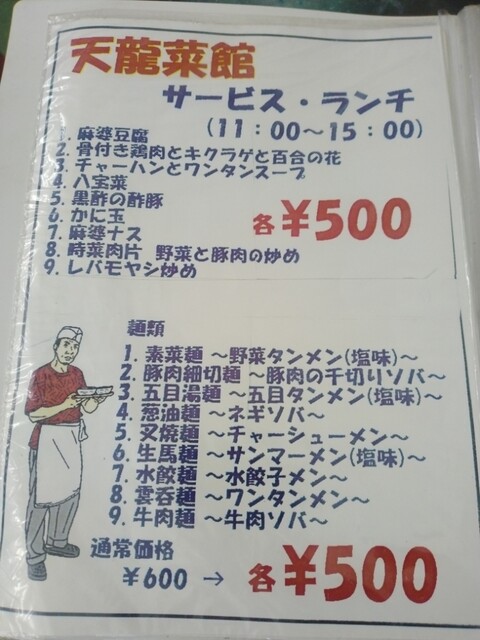 調査の結果、写真撮りましたが土曜日曜も平日と同じ〝驚安のランチ〟が「天龍菜館」さんで実施されてる事が、わかりました。