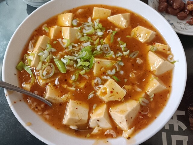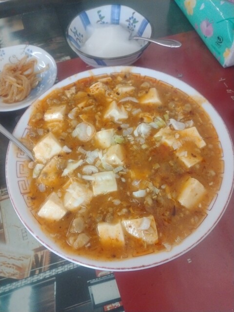 この店は広東料理店ですが、あえて四川料理の「麻婆豆腐」を注文しました。