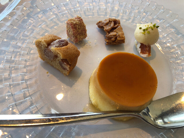 Mignardise・市田柿のベイクドチーズケーキのマリアージュ・真鶴プリン。プリンがね、絶妙なとろとろ加減で悶絶した。干し柿とチーズも合う!一口の至福♡