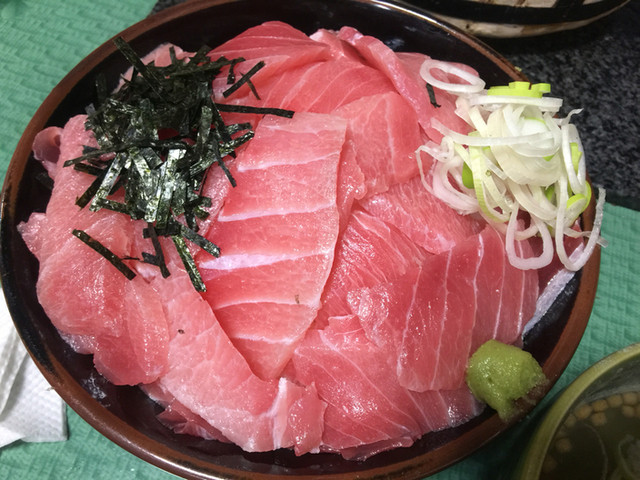 鉄火丼のアップ。というか大きすぎてアップの意味があるのかないのか。