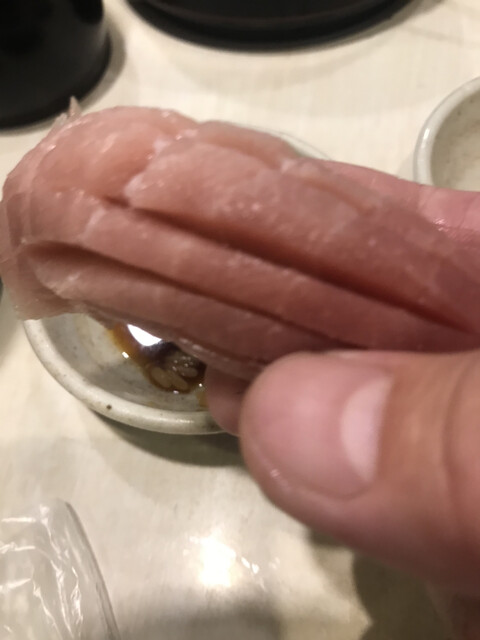 また、コチラお箸が無く、渡されたおしぼりをあてに出された寿司を摘んで行くスタイルの様です、