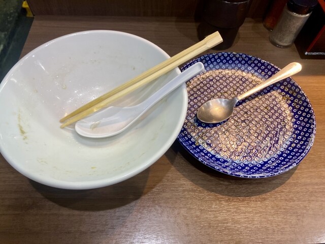 嬉しすぎて、2品目カレーの前ラーメンの最後でワンタン一口パクッと行っちゃう僕、、、
