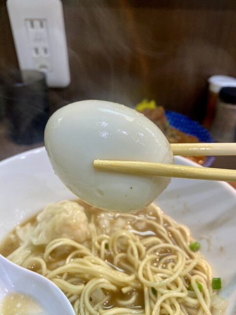 今日もツイテル、ラーメンの中に、ワンタンと味玉がいらっしゃるじゃないですか!!