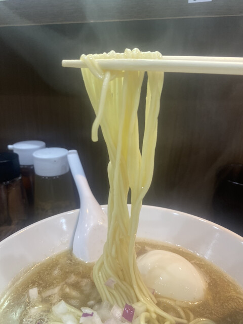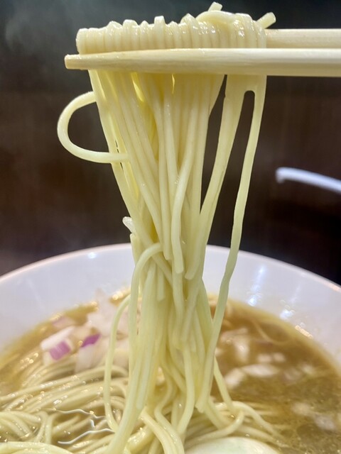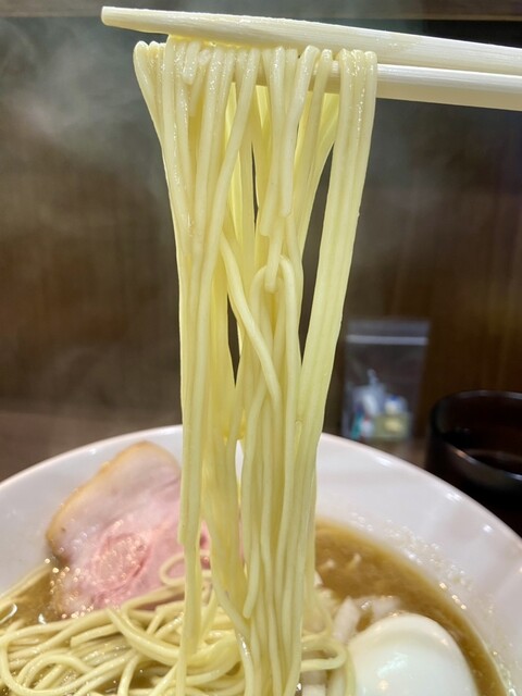 この日の煮干は【長崎産のカマス】さらに,カツオ節や鶏,また豚で旨味に厚みを持たせた絶品スープがアノ有名な三河屋製麺(東久留米市)の細麺に良く絡み深い味わいが無限に広がります!