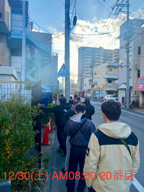 この日の並び感は、僕が並んだ時点で8番目(お店はカウンター8席のみ)ギリ開店1巡目で座れました!