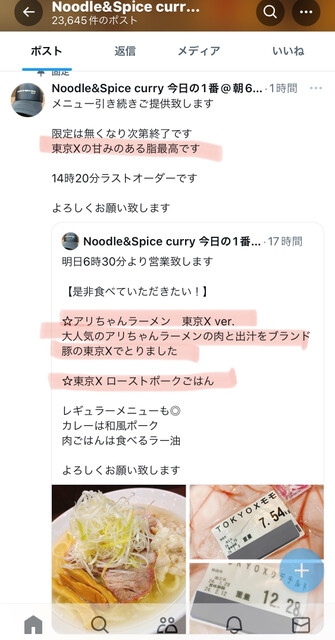 ちなみに,今日は昨日店主からのTwitter(X)で届いた、
