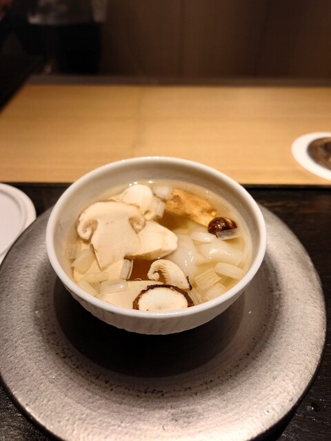 乾物を使ったスープ衣笠茸、干しつぶ貝、フカヒレ、才巻海老、里芋等