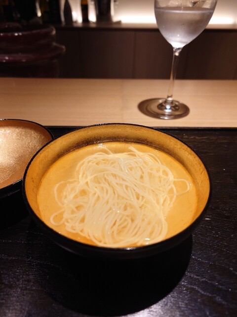また最後の方に出てきた麺とスープは、全く具も入っておらず、シェフの真剣勝負の料理だということが分かった。麺とスープだけの単純な料理なので、食材の力を借りるわけにはいかない。シェフの腕だけで食べさせる料理なのだ。麺は小麦の香りのするものを使い、スープは中華の王道、金華ハムと干し貝柱だけから作ったものだからだ。