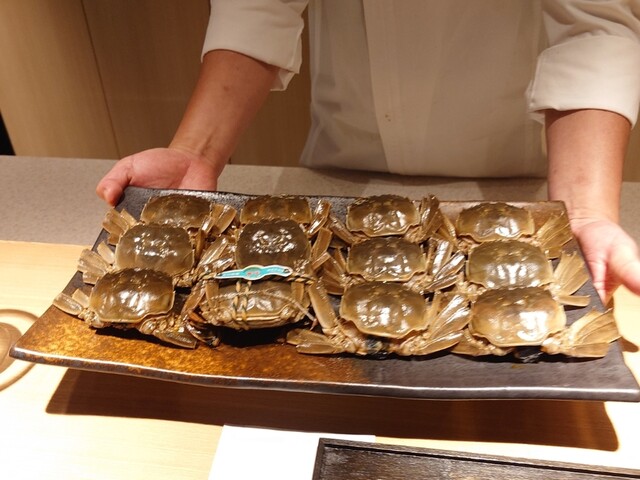 中華であればどこの店も1年で一番活気づく上海蟹の季節に訪問することができた。ちょっと前にお店の方から連絡があり、この時期は上海蟹でも普通のコースでも良いとのことであったが、やはり最高の季節に訪問できた特権で上海蟹コースにしてもらった。