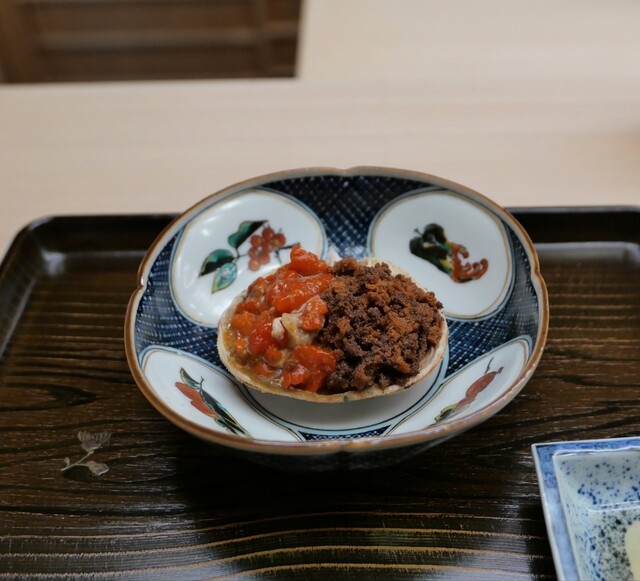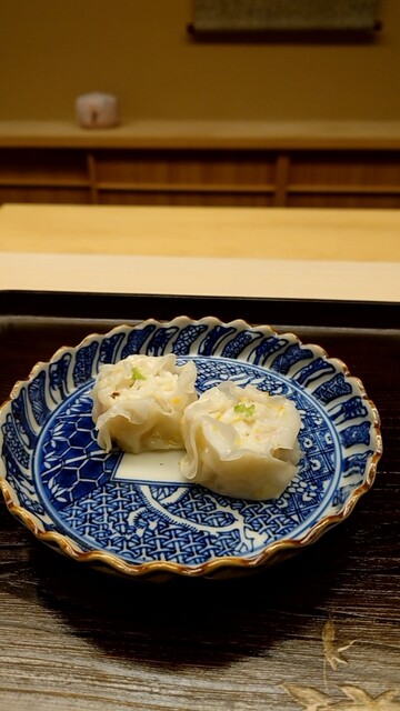 そのあとはズワイガニの身で作ったカニシュウマイ、海マスの揚げ物を昆布塩で頂いた。どれも素晴らしく、恐ろしいほどレベルが高い物ばかりである。