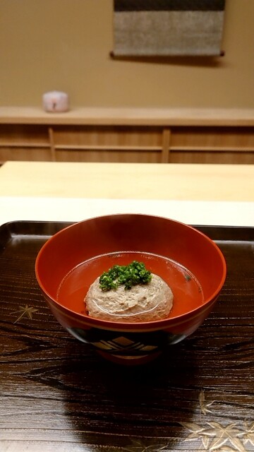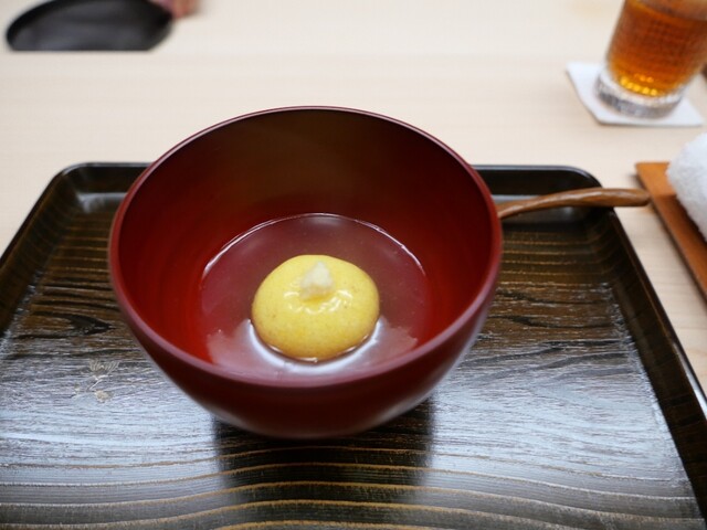 そして2回目の椀がやってきた。この時期この地方では外せないイワシの椀であった。イワシのつみれをいりこ出汁で頂いたのだが、イワシの旨味がぎゅ~~っと詰まって素晴らしい椀であった。