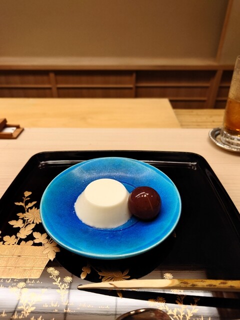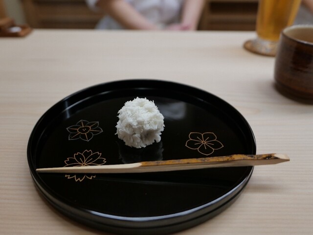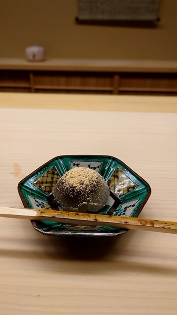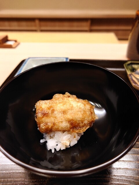 タラの白子の酒粕仕立てを頂いた後はお椀に入った茶巾稲荷を頂いた。中にはお餅と香茸が入っており稲荷の甘みと相まって素晴らしいものであった。こういう味わいって何だか安心するのである。