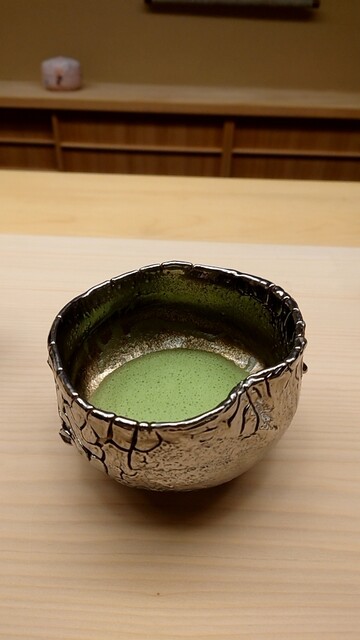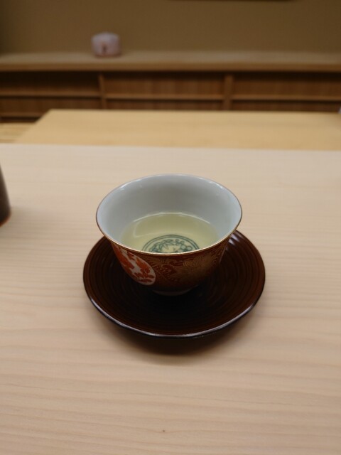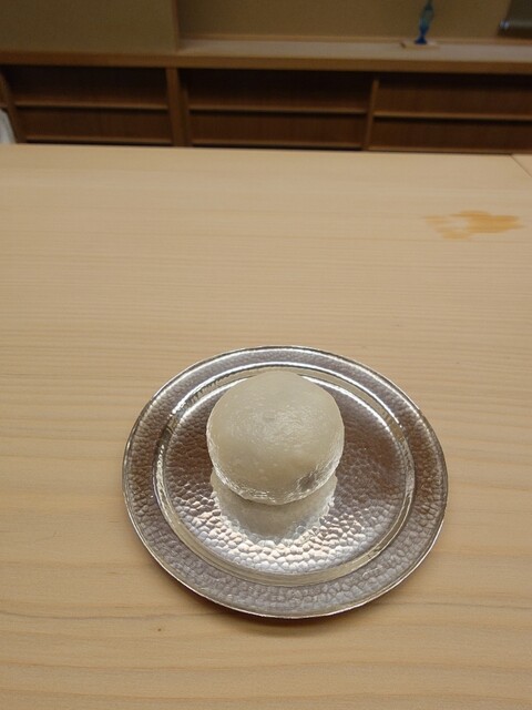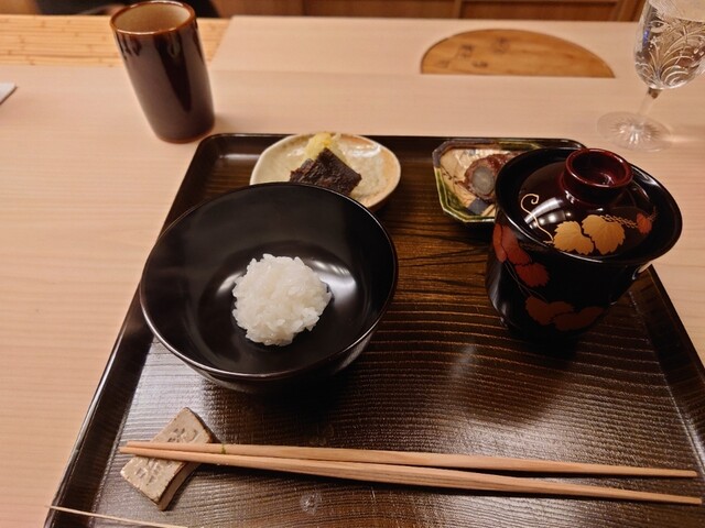今回頂いたのは最初に能登の原木椎茸にお粥、そして2品目がヤナギバチメの椀物であった。この椀はカウンターでお弟子さんがカツオを削り、そこに昆布出汁の入った器に鰹節を入れて大将が味の調整をしとことん高みに上げた極上の椀であった。これは凄かったなあ~~