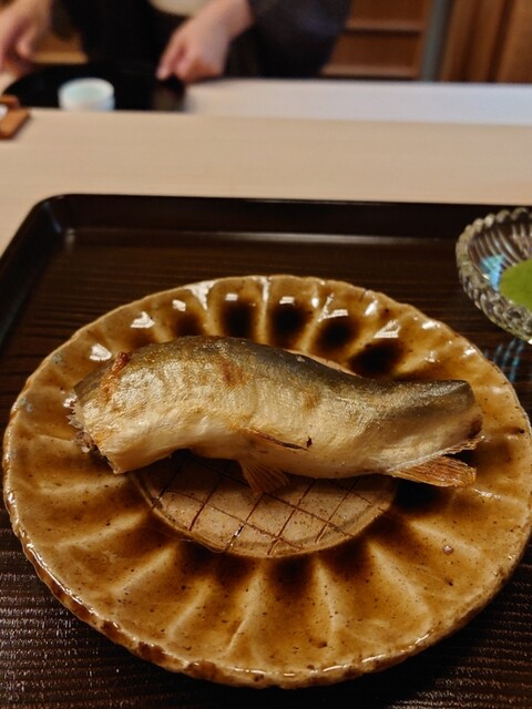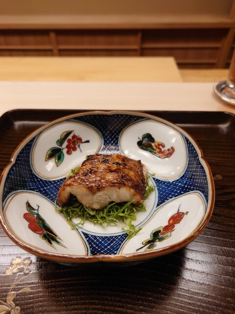 そして魯山人のお皿にノドグロの炭火焼きが乗って提供された。炭の香りがほのかにして食欲をそそられ美味しかったのは言うまでもない。