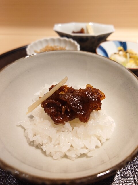 いや~~凄い店であった。うわさ通り、いやうわさ以上に驚いた。最初の滑らかな胡麻豆腐の白味噌仕立てでビックリし、いきなりのこのわたの飯蒸し、そしてバチコで海を感じさせられた。